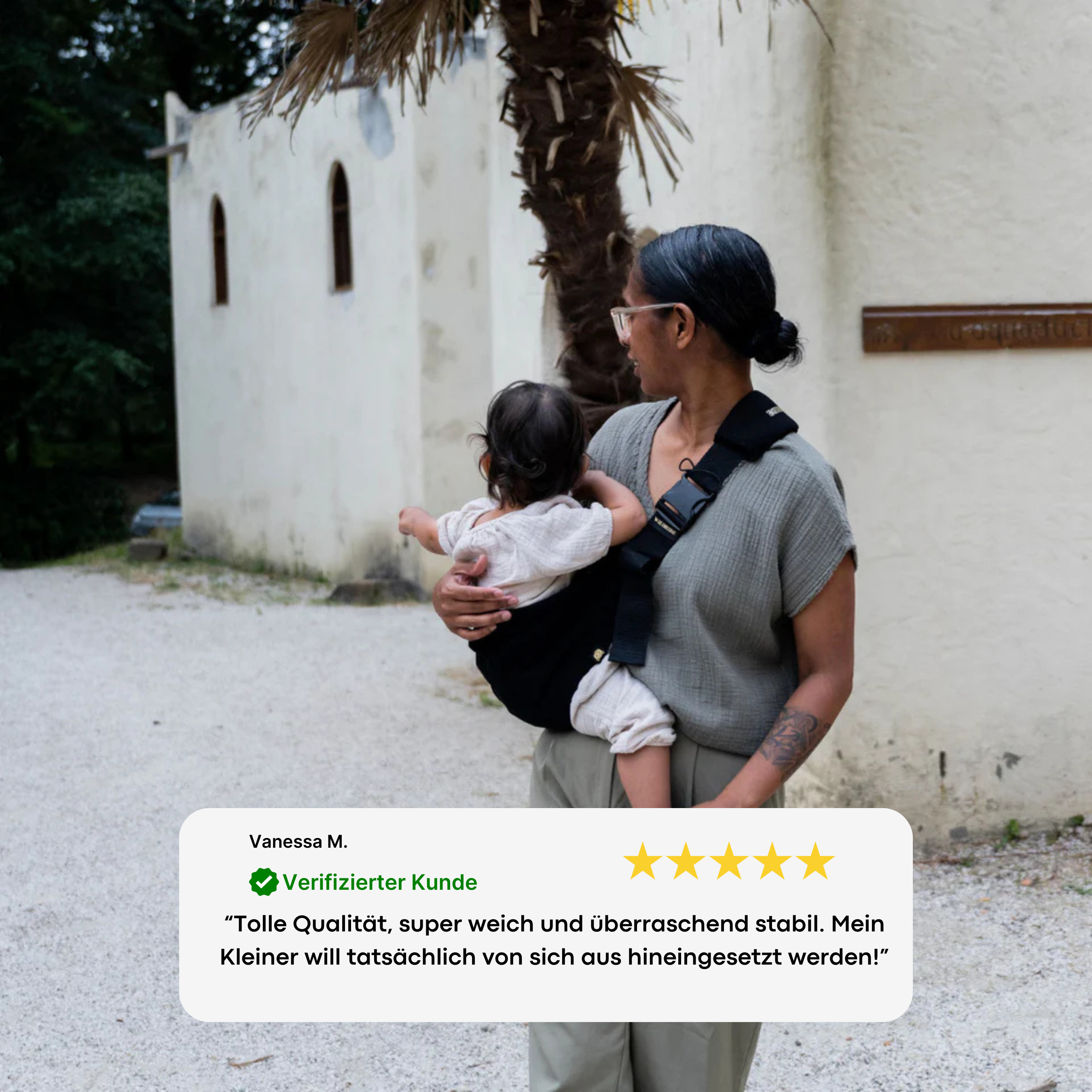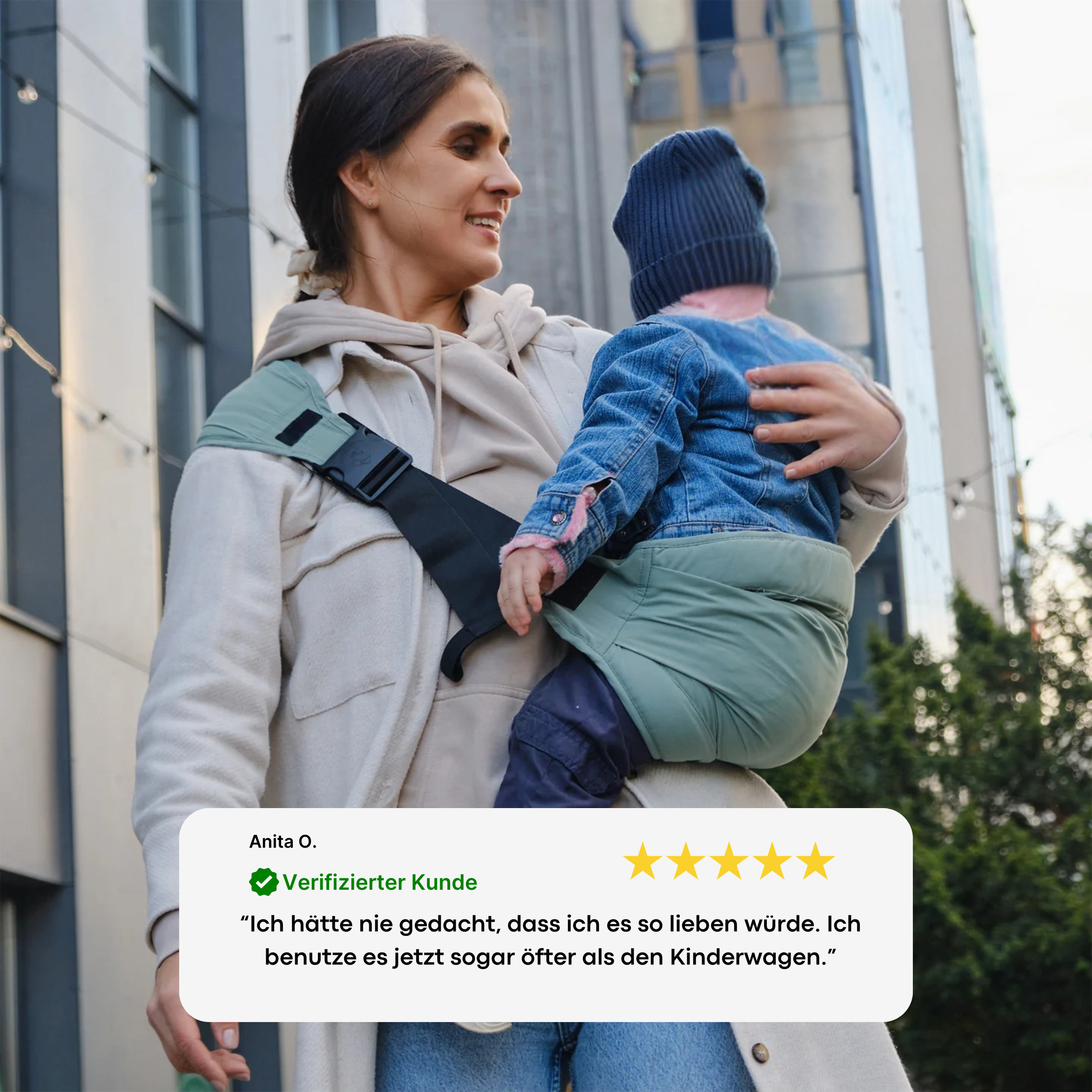 Sag Rücken- und Armschmerzen beim Tragen deiner Kleinen Lebewohl – mit unserer ergonomischen All-in-One-Kindertrage erlebst du den ganzen Tag über angenehmen Tragekomfort, freie Hände und uneingeschränkte Bewegungsfreiheit!