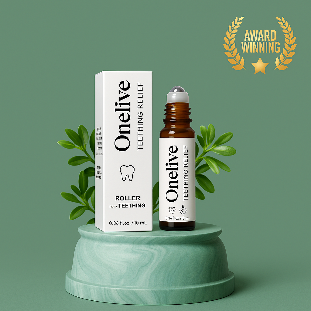 Der OneHive Zahnungsroller ist ein natürlicher Roll-On, der speziell zur Linderung von Zahnungsschmerzen bei Babys entwickelt wurde. Er besteht aus 100 % pflanzlichen und biologischen Ölen.